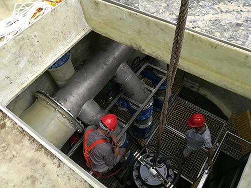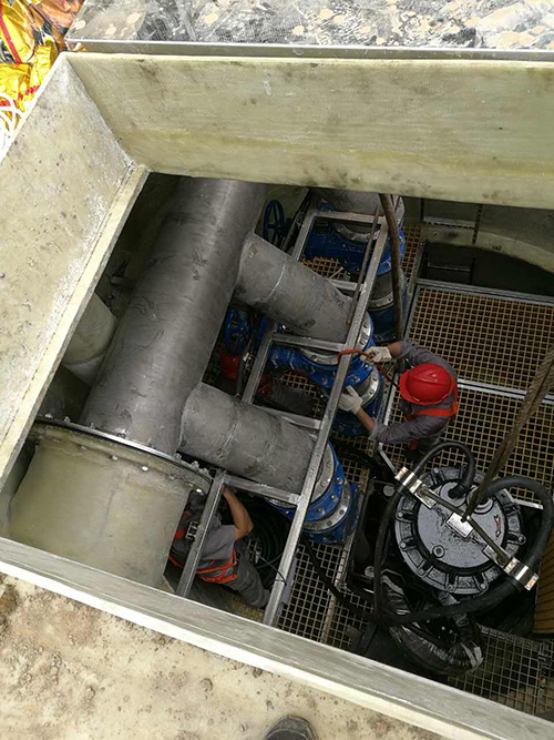 我司供貨華陽地鐵下穿隧道預制泵站,潛水泵吊裝、安裝現場!